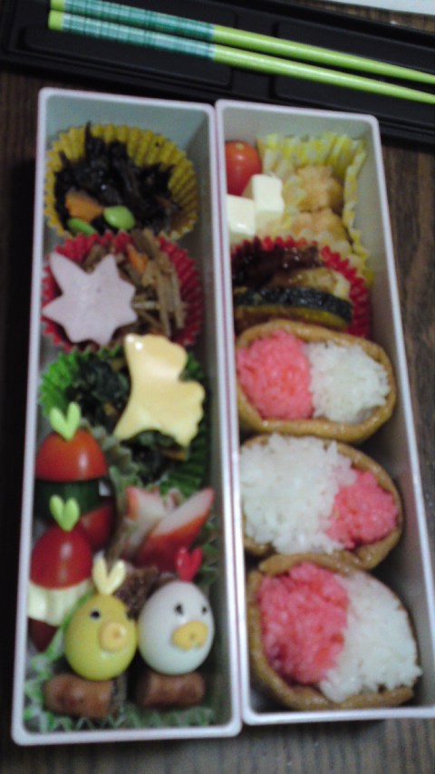 「単に お弁当レシピで見るいなりずしのキャラ弁が とってもかわいかったから」